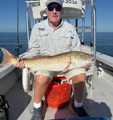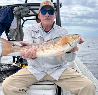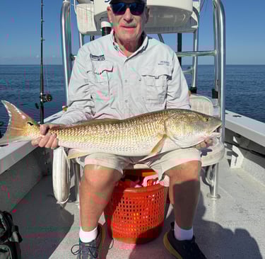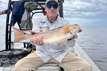 They fished aboard the Tail Walker with Captain Andrew Meyer. The fishing started slow, catching a few short trout. We caught 6-7 nice Reds, with John landing a 28.5 incher which was released due to being out of the permitted slot. Capt. Andrew continued to work hard to find the fish (as he always does).