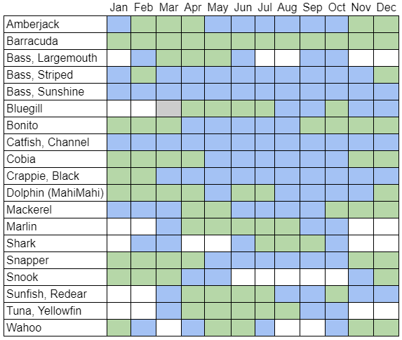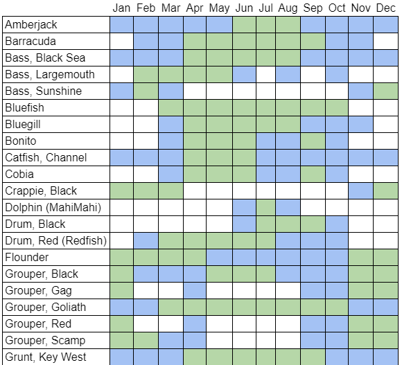 Florida Fish and Game Regulations for Gulf and Atlantic by species Click on file and download below: