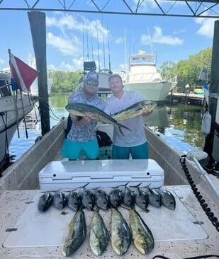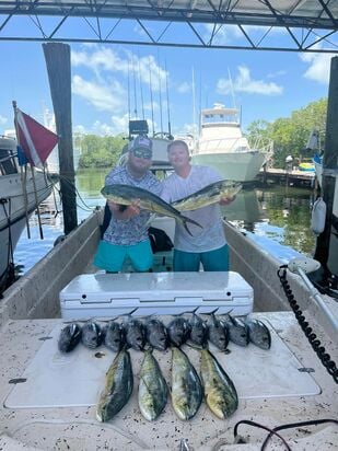 Thunder is a 42' shallow draft boat with twin diesel engines. It can fish close Inshore or go 30-40 miles offshore.