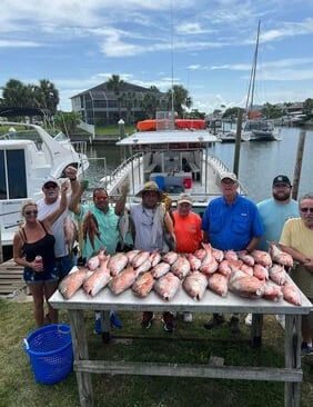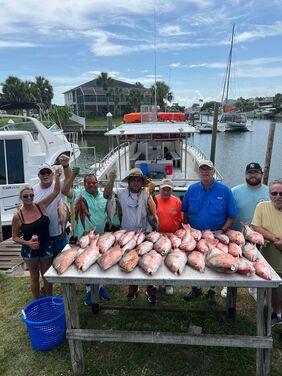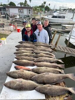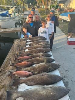 Their catch includes grunts, Spanish mackerel, sea bass, cobia, flounder, King fish, triggerfish, hogfish, mangrove snapper, sea trout, amberjack, and bull reds depending on the season.