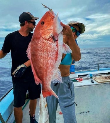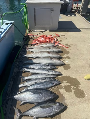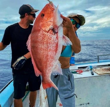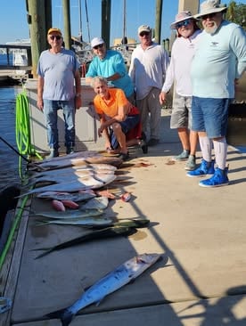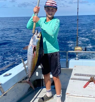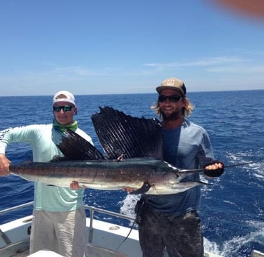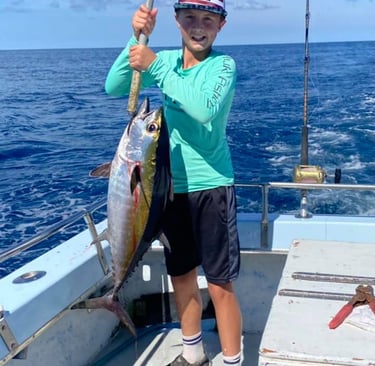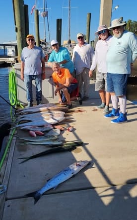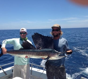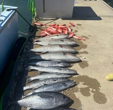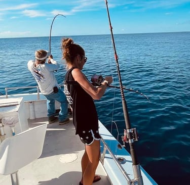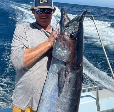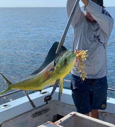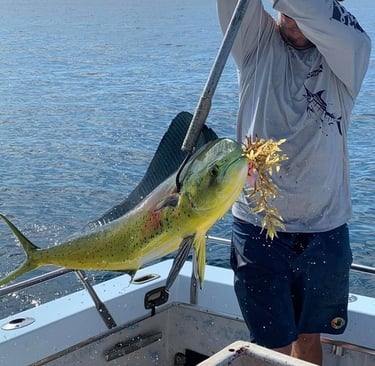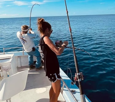 Our 10-hour charter is a gulf stream expedition. We fish anywhere from 35-45 miles offshore chasing Mahi Mahi, Sailfish, Wahoo, and Black fin Tuna. We also bottom fish for Vermilion Snapper, Amber jack, Trigger fish, and Grouper.